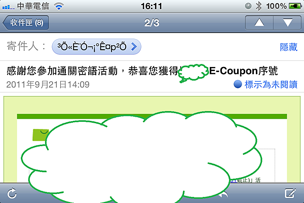但是寄件者在iphone上面沒有辦法正常顯示人類看得懂的文字