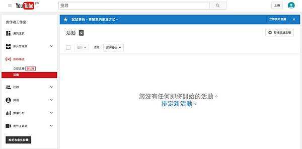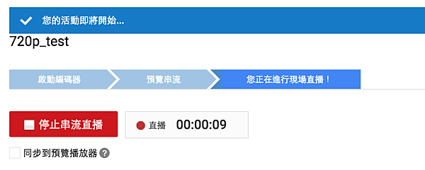 回到 youtube 現場中控室,可以從串流狀態觀察推送的狀況是否正常