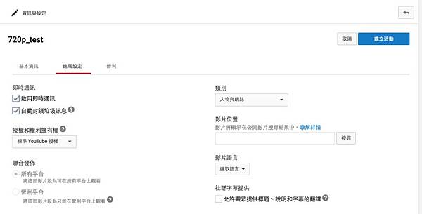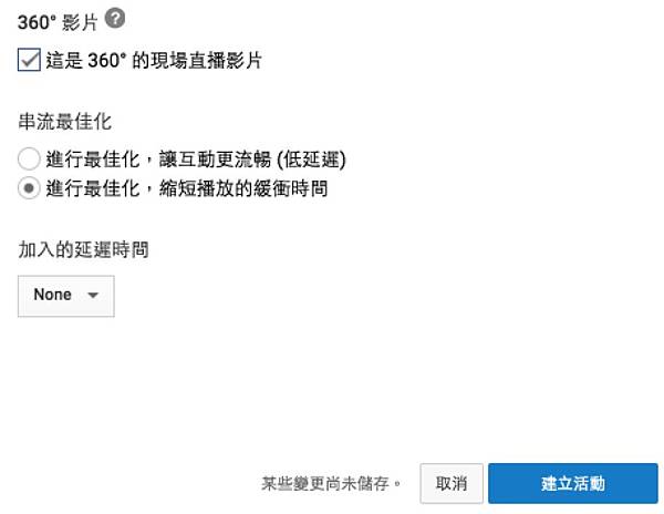 找到這是 360 的現場直播影片 打勾,最後點擊建立活動