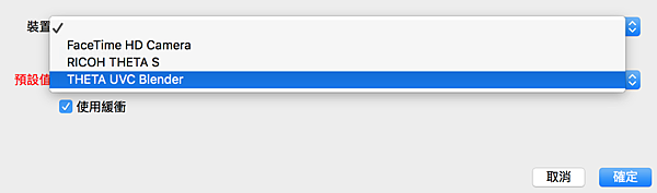 所以影像裝置請選擇 THETA UVC Blender ,才會有360度特效