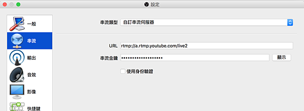 進入OBS設定 -> 串流,把剛剛youtube 串流資訊貼上,並推送出去