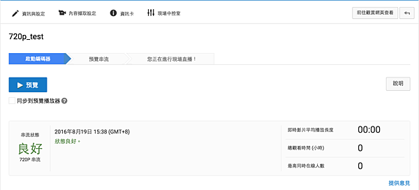 預覽程序處理完成了,管理者可以先看預覽,或是直接啟動串流直播