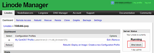 1. 登入管理介面,選擇dashboard 頁籤 -> 把要重設密碼的機器關機