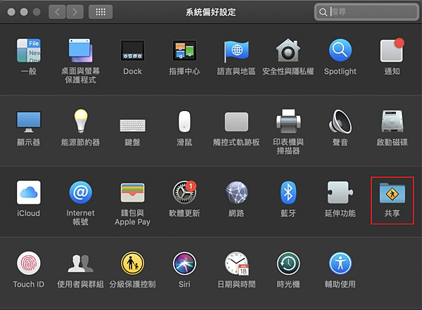 1. 系統偏好設定 -> 共享