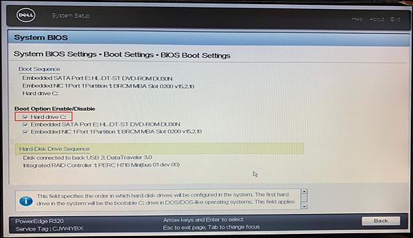 1. 在開機設定的地方確認 Hard drive C: 是否已勾選