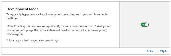 curl -X PATCH "https://api.cloudflare.com/client/v4/zones/YOUR-ZONE-ID/settings/development_mode" \