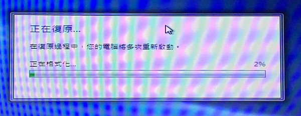 7. 開始復原,過程中將會多次重開機