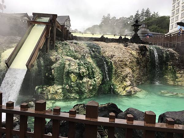 草津溫泉屬於強酸溫泉,水溫較高,無法直接入池